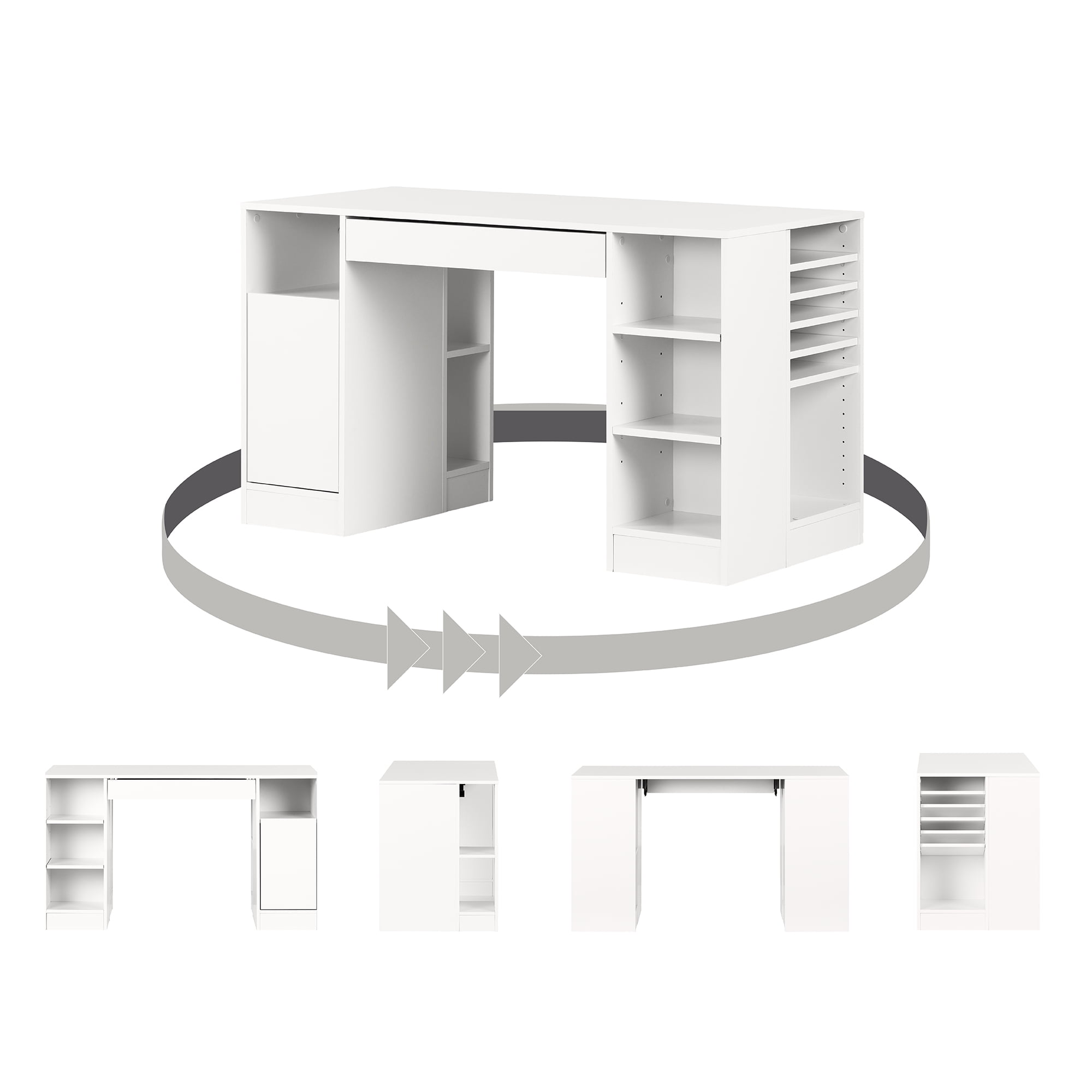 South Shore Crea Craft Table On Wheels With Sliding Shelf Storage Drawers And Scratchproof Surface Pure White